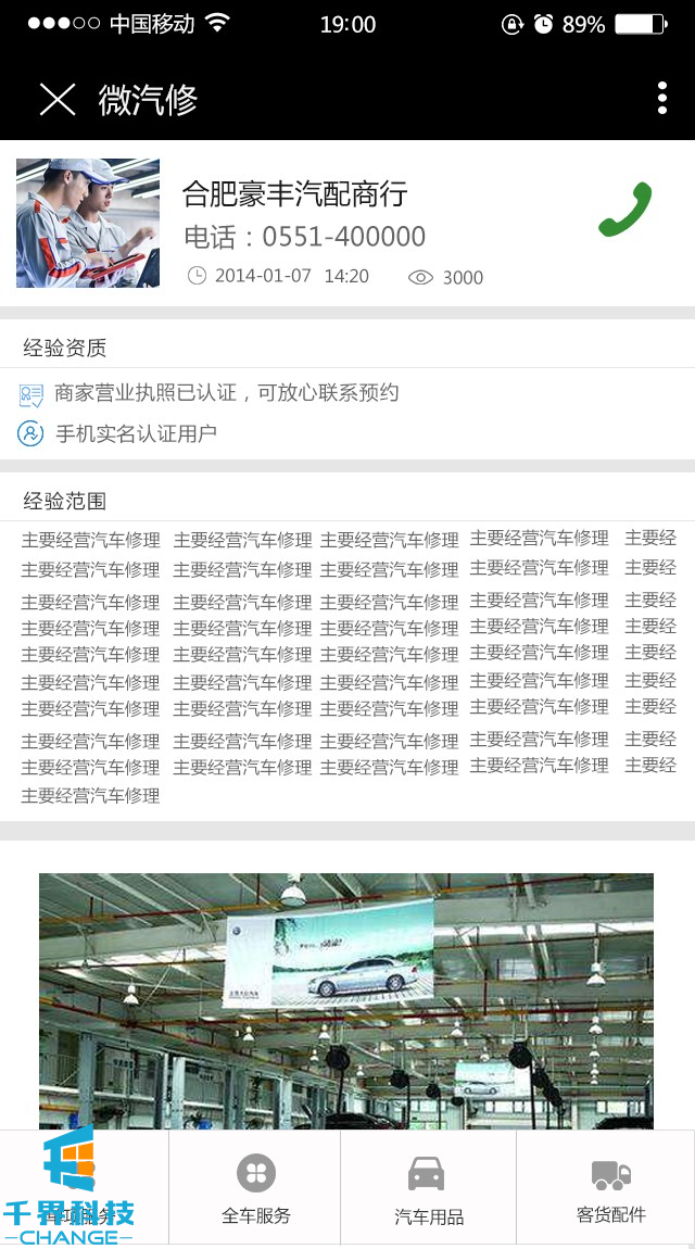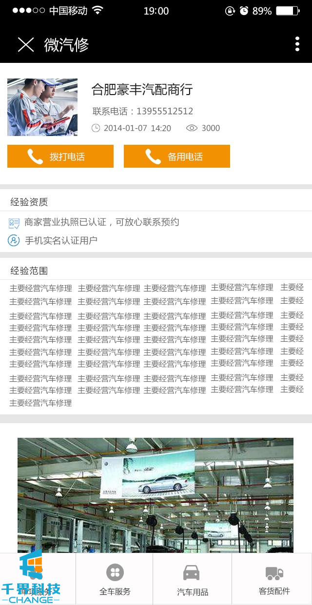 該項目是一個(gè)汽修商家聯(lián)盟信息的展示平臺。里面包含分類(lèi)管理,信息展示,在線(xiàn)撥打電話(huà),信息通知,自動(dòng)排序等功能。