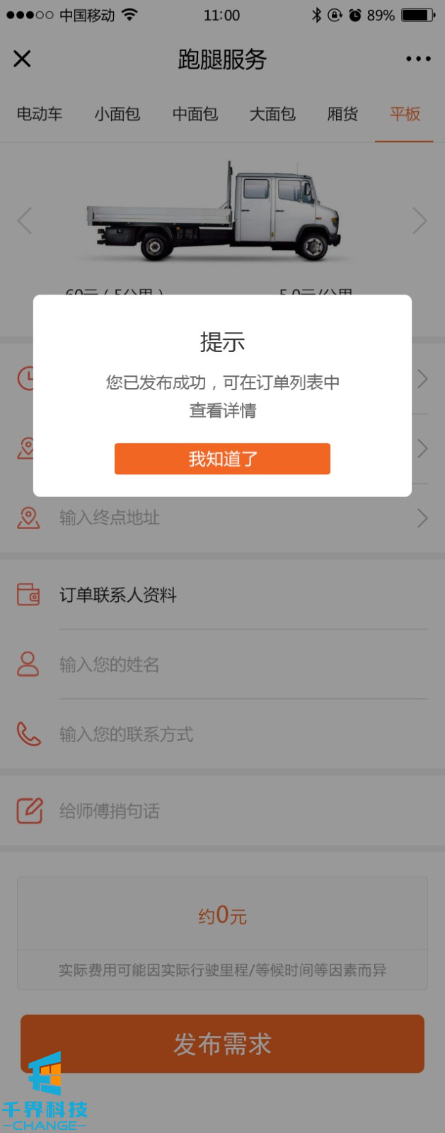 該項目是一個(gè)類(lèi)似貨拉拉的線(xiàn)上跑腿平臺。里面包含用戶(hù)下單,車(chē)型選擇,距離計算,在線(xiàn)支付,跑腿員搶單,訂單跟蹤等功能。