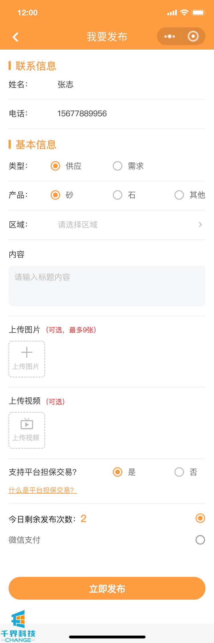 項目名稱(chēng):砂石供需平臺小程序 項目類(lèi)型:小程序