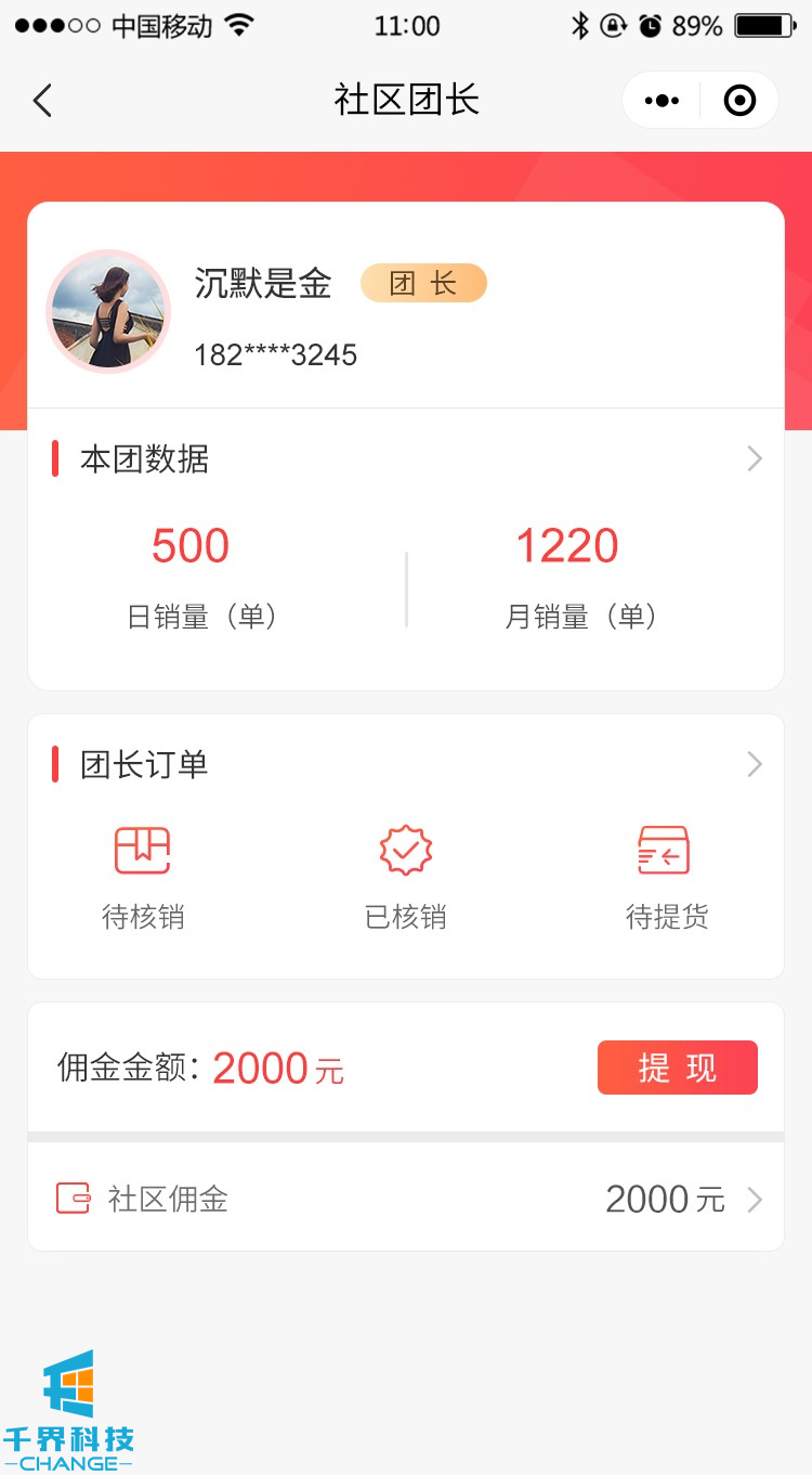 該項目是一個(gè)社區團購小程序,用戶(hù)可以申請注冊社區,成為社區團長(cháng)核銷(xiāo)有傭金。并且平臺含有層級分銷(xiāo)關(guān)系